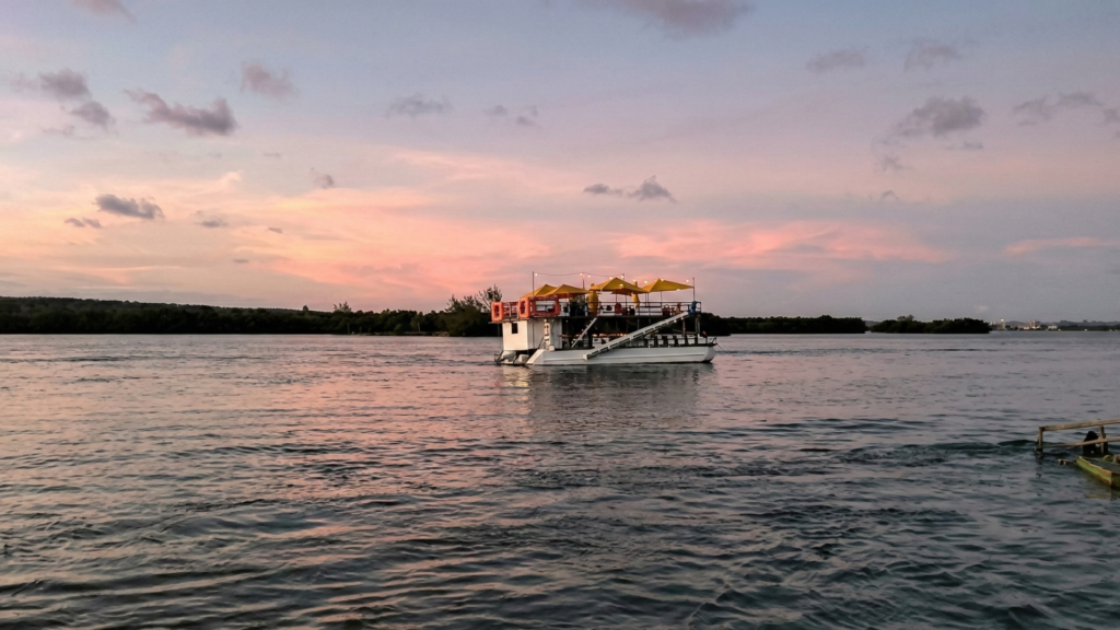 Um tour panorâmico pela Lagoa Mundaú que explora diversas ilhas com paradas para banho e almoço e um pôr do sol inesquecível, com opções de pacotes que incluem transporte e refeição.