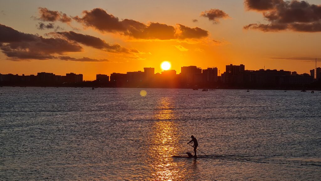 O fim de tarde em Maceió é um espetáculo à parte. Existem pontos onde o céu muda de cor lentamente, criando momentos silenciosos e especiais.